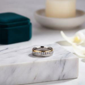 Zselyke nemesacél gyűrű arany-fehérarany fazonban strasszkővel gazdagon díszítve