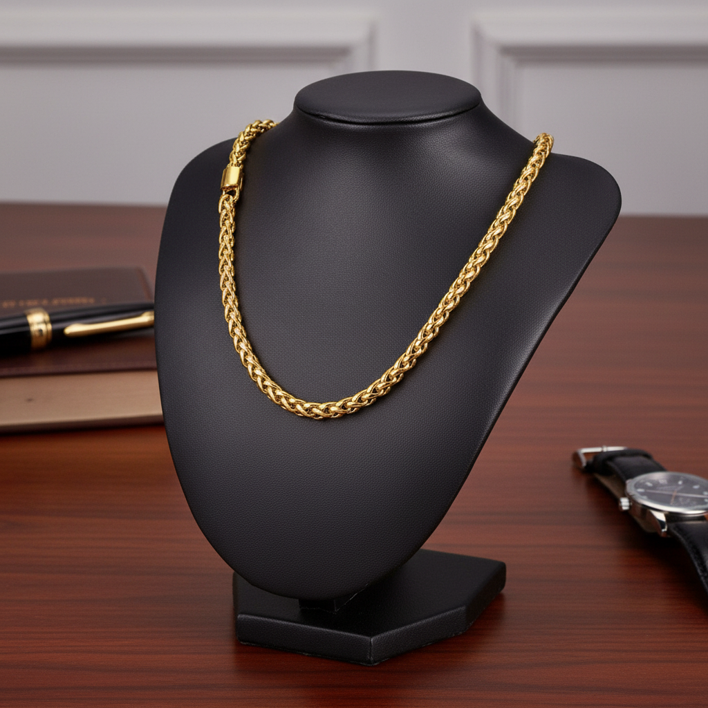 Nemesacél nyaklánc ,arany fazonban. Sűrű szemezésű.