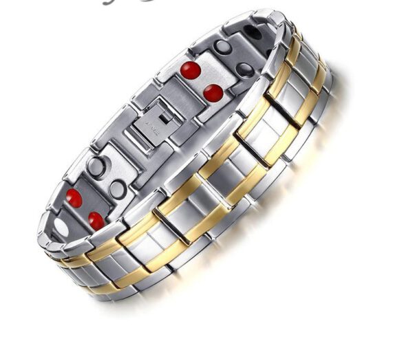 Luxus nemesacél karkötő, nyílhegy alakú szemek, arany-fehérarany színű mágneses germániumos vörös infrás karkötő.