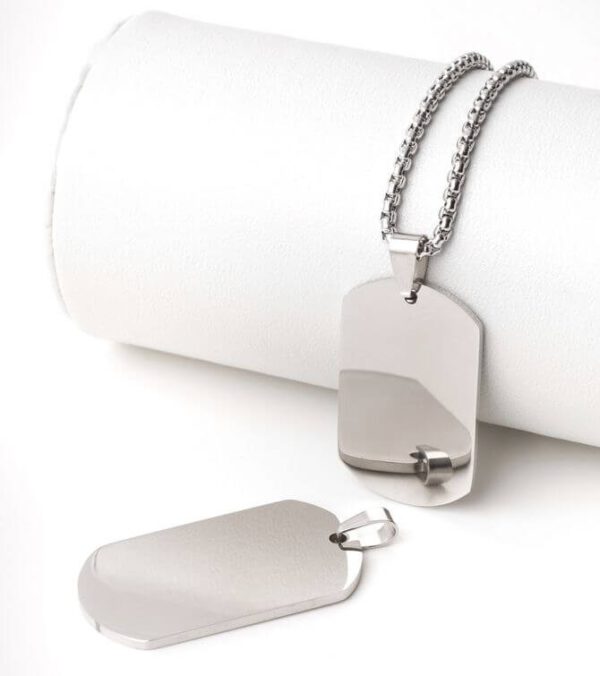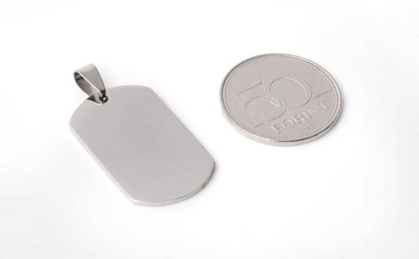 Elegance Orvosi acél gravírozható dögcédula medál ezüst fazonban 36 mm x 22 mm