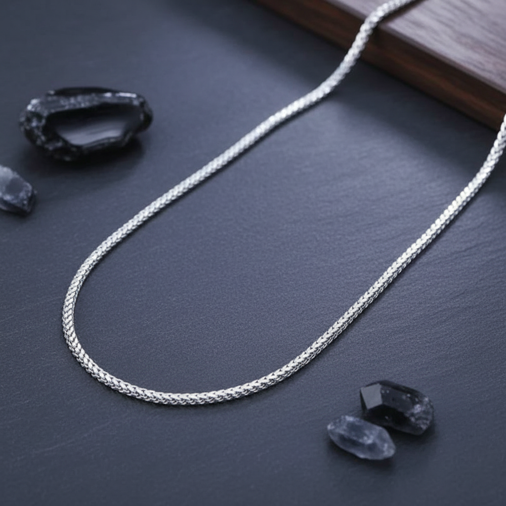Elegance stílusos nemesacél nyaklánc ezüst fazonban 50 cm – 60 cm hosszúságban választható 3 mm vastag.