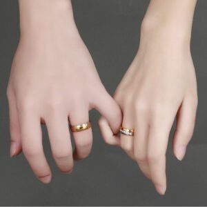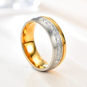 Prémium minőségű nemesacélból készült, elegáns női gyűrű,  magas minőségen elkészített IP gold plated, átlátszó víztiszta cirkónia kövekkel díszítve a férfi kő nélküli.