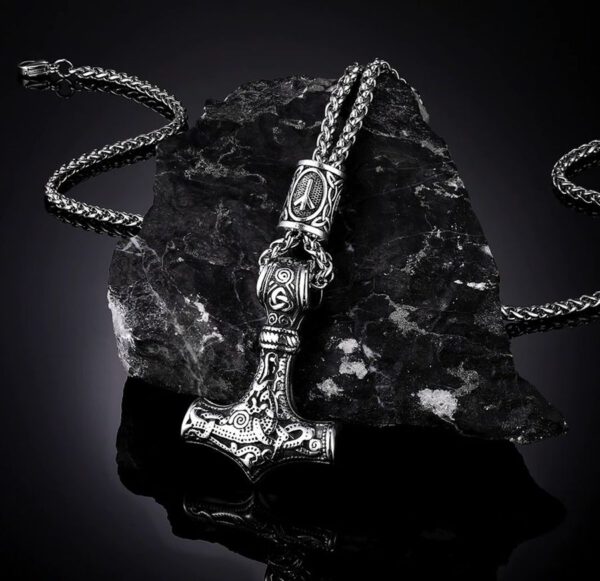 Nemesacél nyaklánc MJÖLNIR medállal és AJÁNDÉK rúna dísszel.